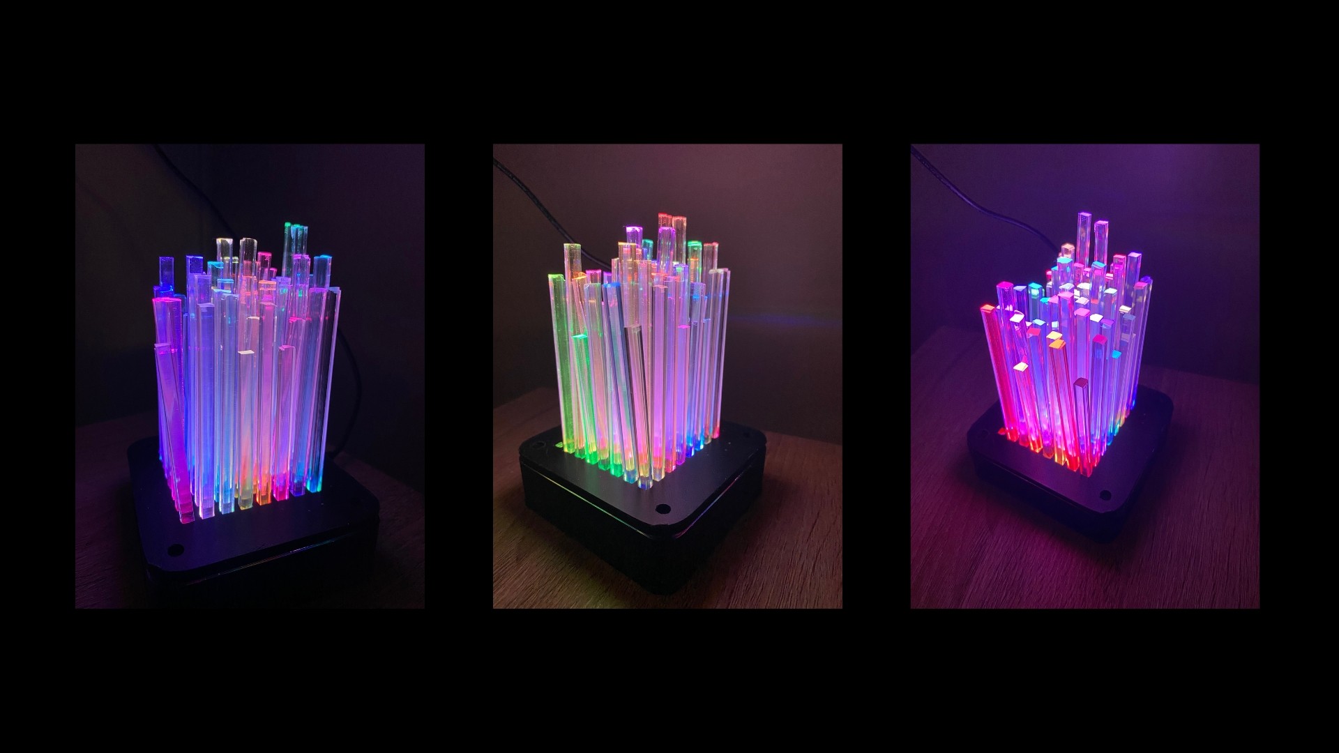 The translation from inspiration to prototype involved mastering 3D modelling software to create precise, layered structures that captured the silhouette and depth of the skyline. Rapid prototyping technologies enabled the transformation of digital designs into physical objects, allowing for iterative refinement of form, texture, and scale. Integrating Arduino technology added an interactive dimension, animating the piece with programmable lighting effects that mimic the changing twilight hues and city lights, creating a dynamic sensory experience that unfolds in the viewer’s hands.
